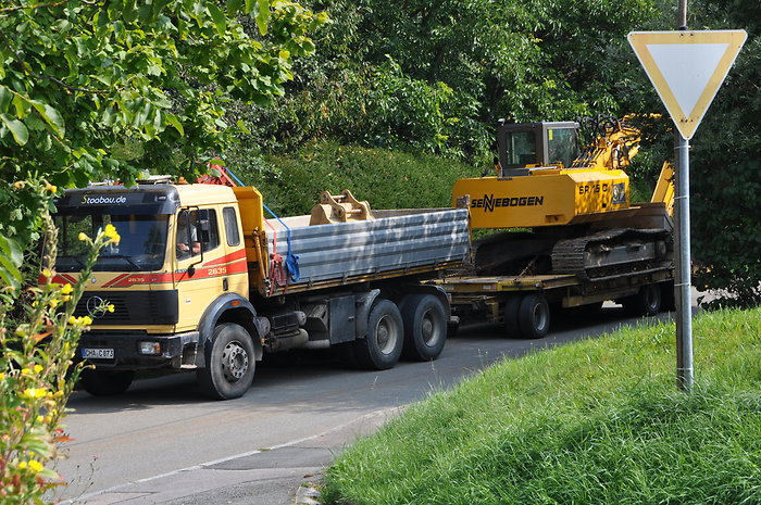 Selbstverständlich stehen für Transporte verschiedene Anhänger bzw. Tieflader zur Verfügung.
